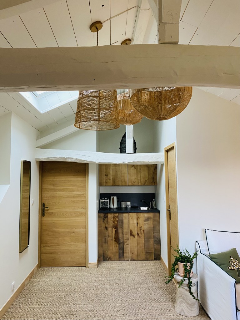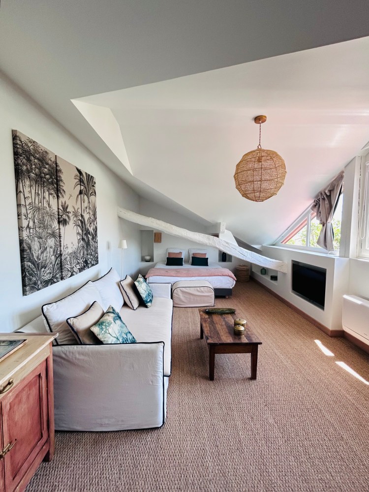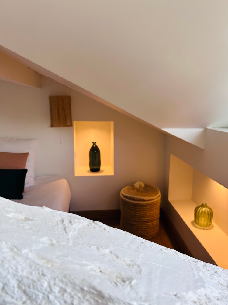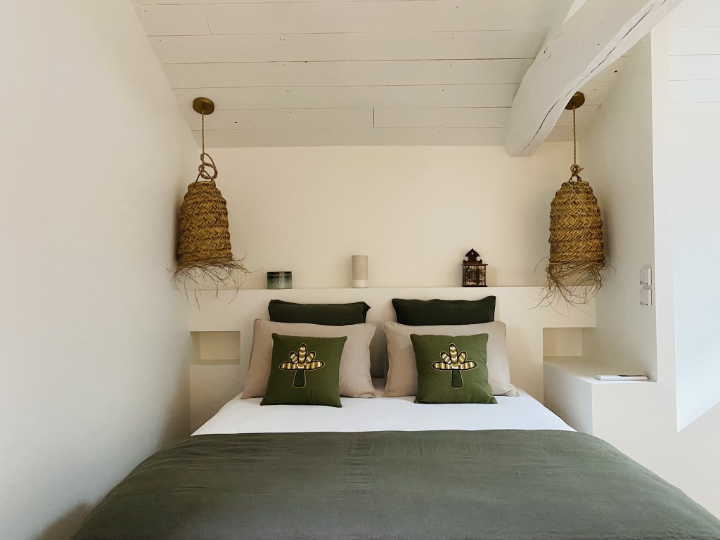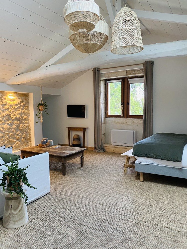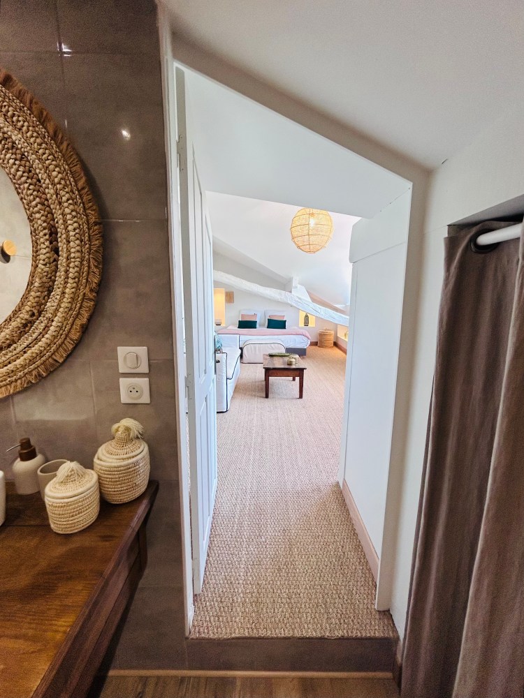 Situées à l’étage de la maison, les Suite Ouest,Suite Est et Sud ont été conçues et décorées pour que vous viviez une expérience unique et paisible. Les matériaux naturels, tels que le châtaignier et le chêne, jonc de mer, le lin (Haomy)… leur apportent une atmosphère chaleureuse.